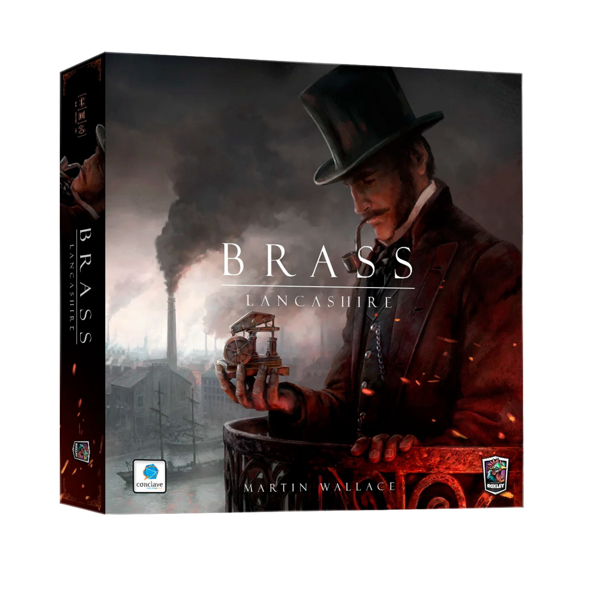 Brass: Lancashire apresenta ilustrações meticulosamente elaboradas por Damien Mammoliti e Mr. Cuddington, um design gráfico elegante e componentes de alta qualidade.