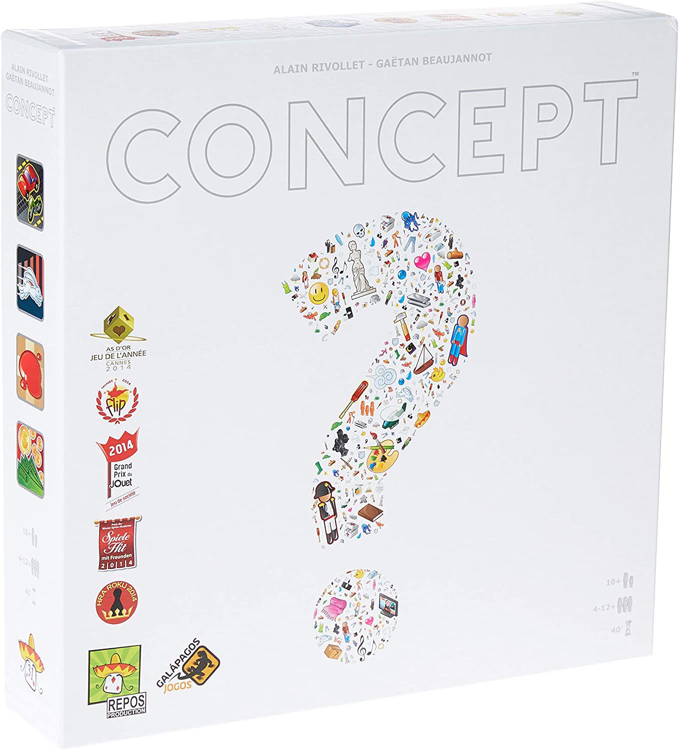Concept é um jogo de tabuleiro familiar, que desafia os jogadores a criarem sua própria forma de comunicação, oferecendo palavras que devem ser adivinhadas através da associação de ícones.