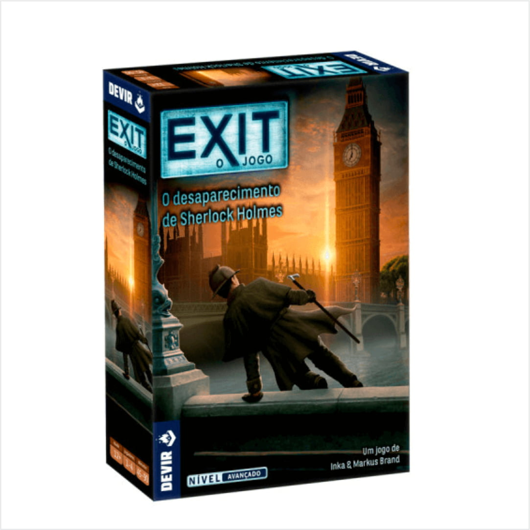 Exit: The Game - The Disappearance of Sherlock Holmes é um jogo de quebra-cabeça modelado a partir de salas de fuga e inclui componentes destinados a serem dobrados, escritos ou rasgados, por isso é comercializado como um jogo de uso único. No jogo, os jogadores precisam apoiar o Dr. Watson e procurar evidências para provar a inocência de Holmes.