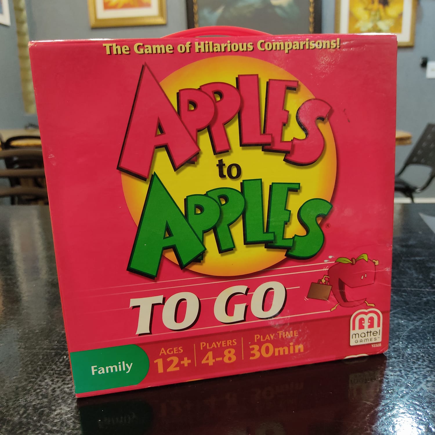Apples to Apples consiste apenas de dois baralhos de cartas: Coisas e Descrições. Cada turno, um jogador (árbitro) seleciona uma carta Descrição e os outros jogadores tentam pegar, das cartas de Coisas em suas mãos, a melhor que se encaixa na Descrição.