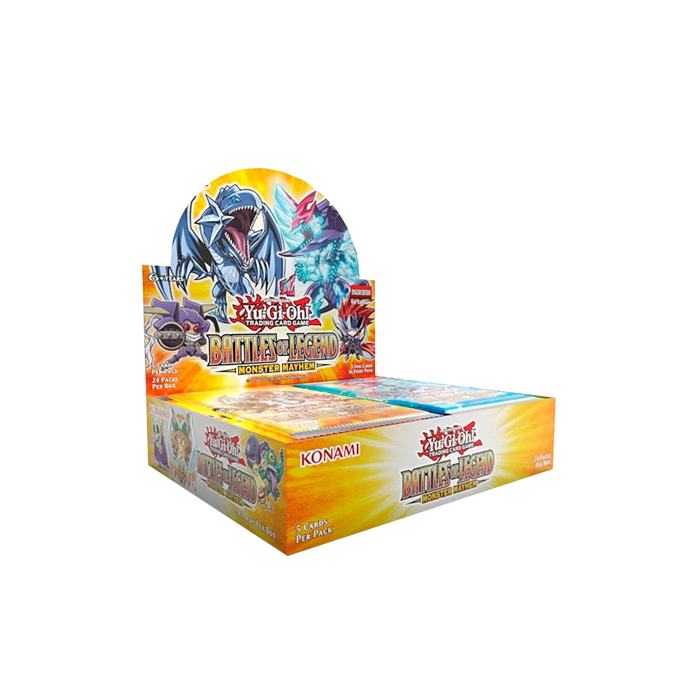 Outra novidade nesta coleção – Ultra Raras com emblemas! Cada pacote de Battles of Legend: Monster Mayhem vem com uma estampa Ultra Rara temática de Dragãozela, P.U.N.K. ou Orcust, com um emblema personalizado desse tema, estampado diretamente na caixa de texto do card.